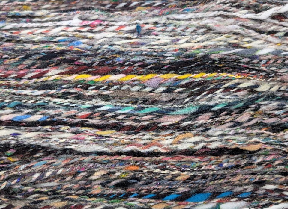 This style of batt barf yarn is made up of two handspun singles, plyed together for a two-ply yarn.