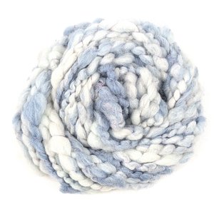 This amazing skein is spun from a batt of blue, white and grey wool and wrapped with metallic pink and purple thread. It's a light as air skein and would be absolutely stunning as a highlight in a knit or crochet project or to add some texture to a woven project.